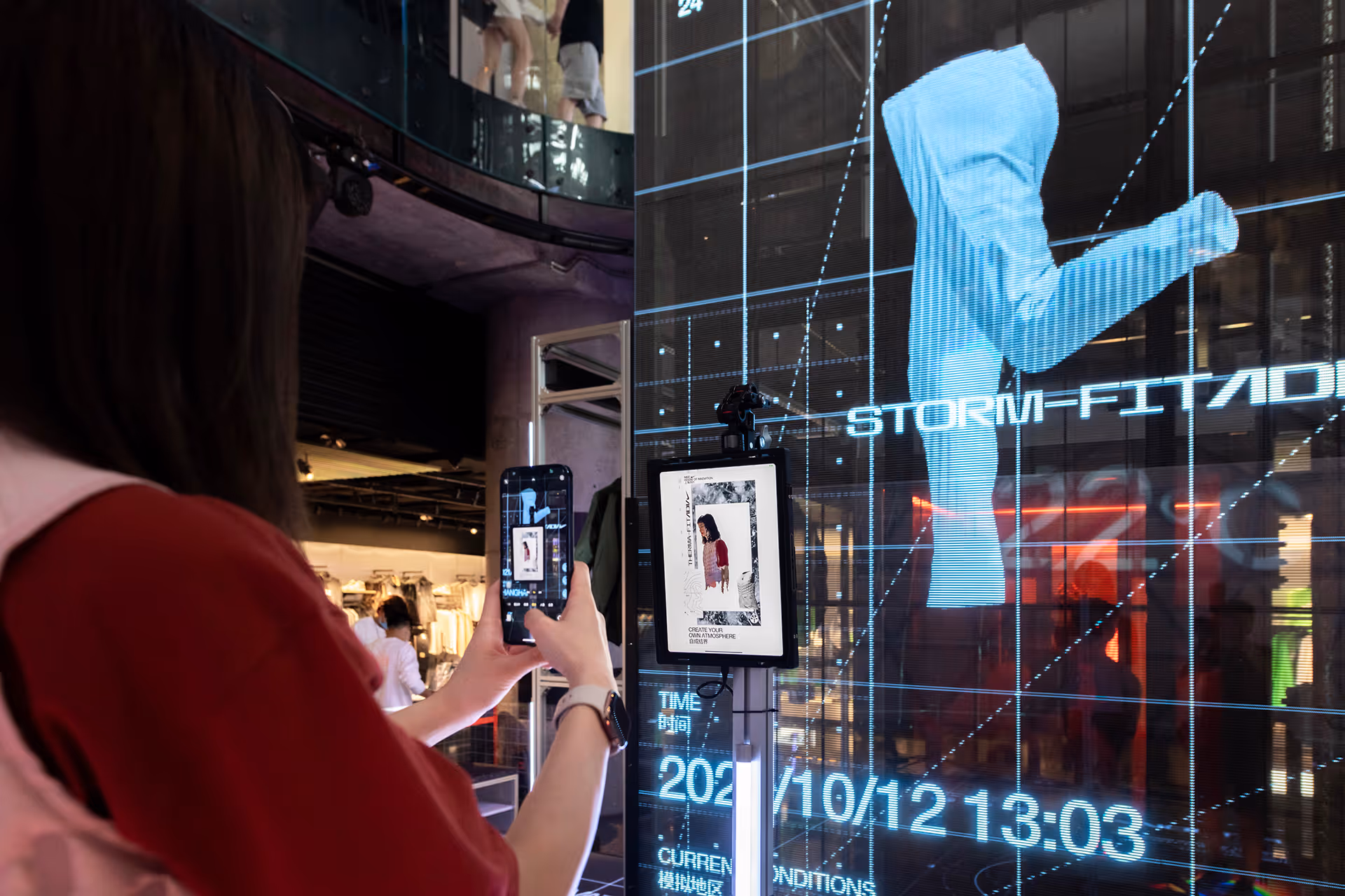 At the House of Innovation stores the team created a multi-sensory climate simulator using XR and interactive media that gives Weather Chasers the chance to test FitADV product in a fully immersive experience. By using sound, large scale virtual environments and projection the experience simulated real world weather conditions while testing FitADV products.